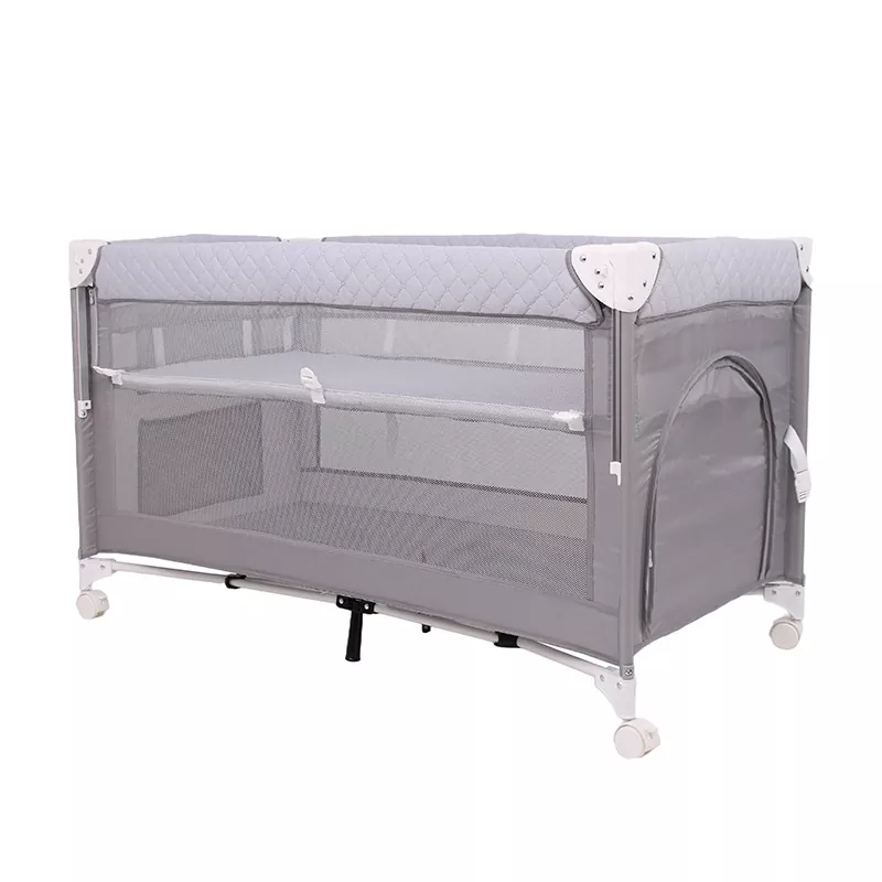 Bebevovo の P1201 折りたたみ式ベビーベッドは、ベビーベッド、ベッドサイドベビーベッド、広い遊び場として使用できます。中層と下層に分かれています。ジッパーを閉めると、中間層が赤ちゃんにとって快適な寝床に変わります。サイドポケットは高さを調節できるので、赤ちゃんの必需品を手近に収納できます。最下層は年長の赤ちゃんのための広々とした遊び場として使用でき、サポートフレームを開くとゆりかごとしても使用できます。 P1201折りたたみ式およびリフティングベビーベッドは、高品質のオックスフォード布とアルミニウム合金または鉄パイプで作られており、耐久性があります。
